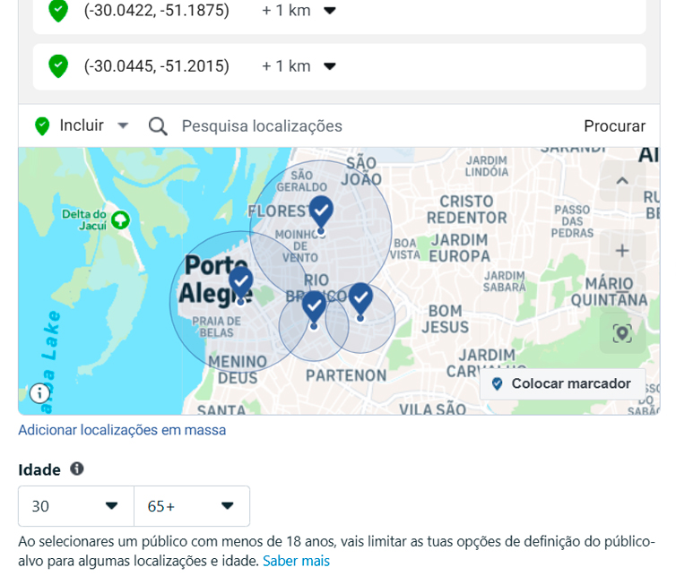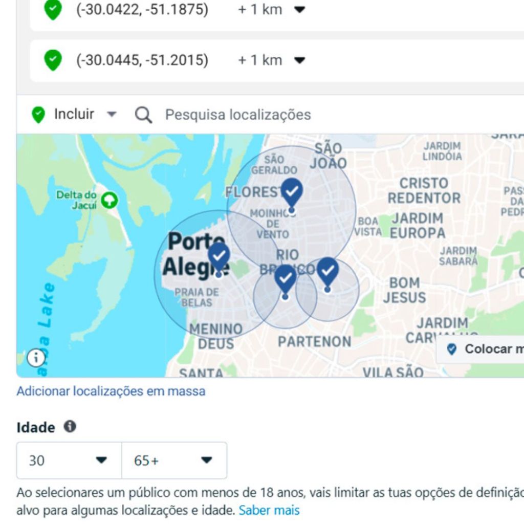 Os anúncios foram segmentados principalmente por idade e localização, sendo direcionados especificamente para bairros onde há imóveis históricos e para pessoas de 30 a 65+ anos de idade (faixa etária com maior probabilidade de possuir imóveis, seja por herança ou aquisição). Por fim, para diminuir o risco do anúncios acabar indo somente para pessoas indesejadas, foi estabelecido um conjunto de interesses em comum e outras segmentações demográficas para buscar quem realmente é proprietário de imóveis.